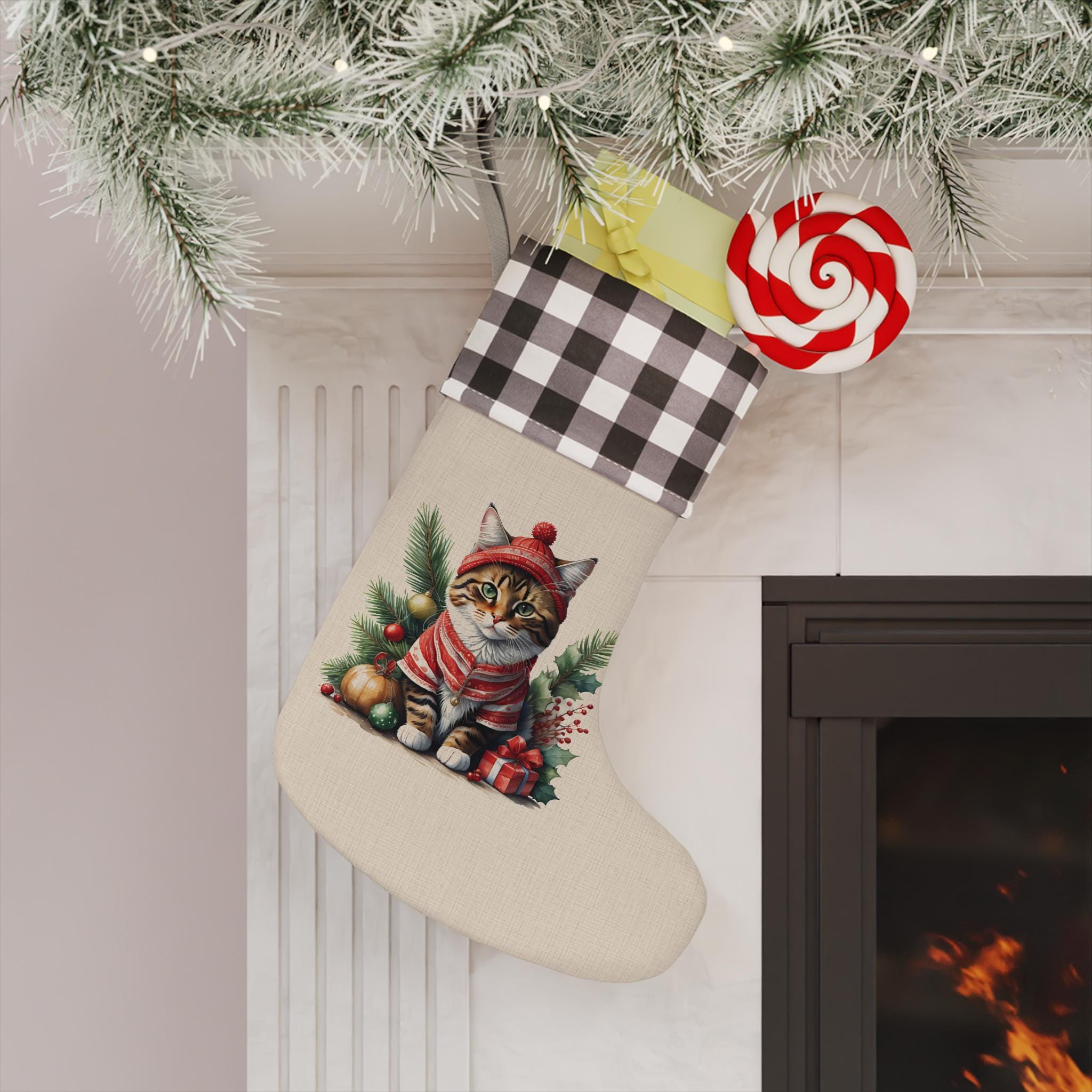 Take the favorite tradition of gift-giving this Christmas to the next level with a personalized Christmas stocking. This burlap Christmas stocking adds a personalized touch to any tree, fireplace, or stair railing with our custom ideas on the boot area. Let this burlap Christmas stocking be filled with candy, treats and small gifts.
