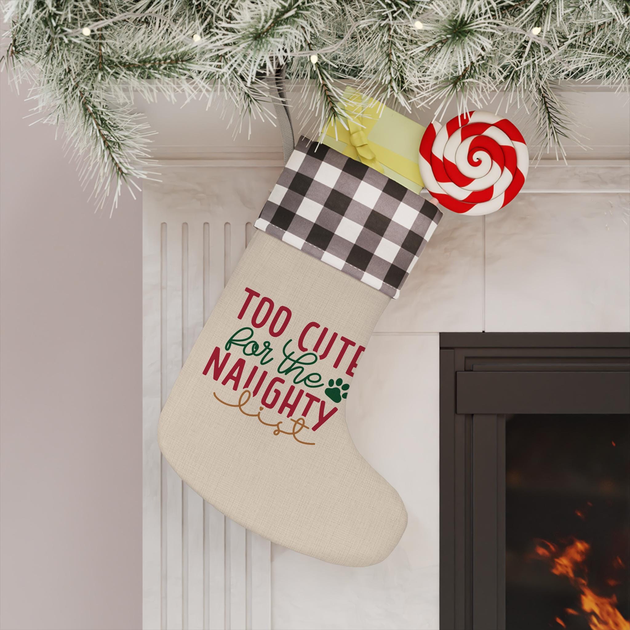 Take the favorite tradition of gift-giving this Christmas to the next level with a personalized Christmas stocking. This burlap Christmas stocking adds a personalized touch to any tree, fireplace, or stair railing with our custom ideas on the boot area. Let this burlap Christmas stocking be filled with candy, treats and small gifts.