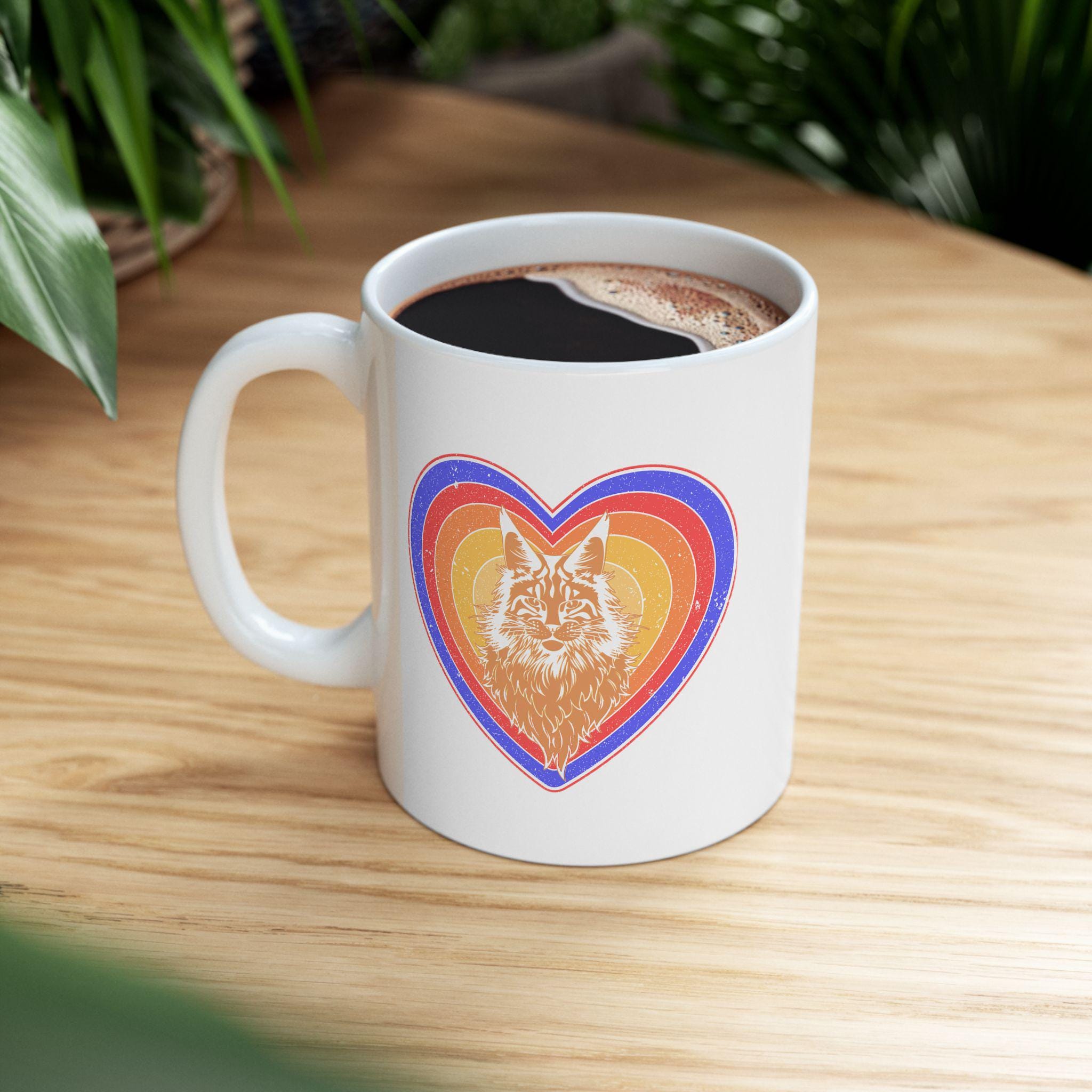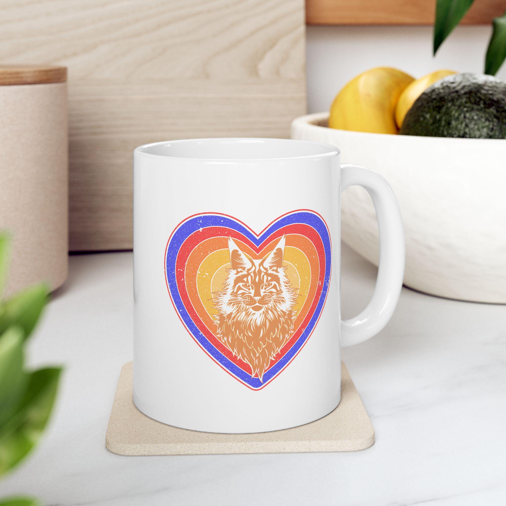 Maine Coon Cat Head in Retro Heart Mug, 11oz