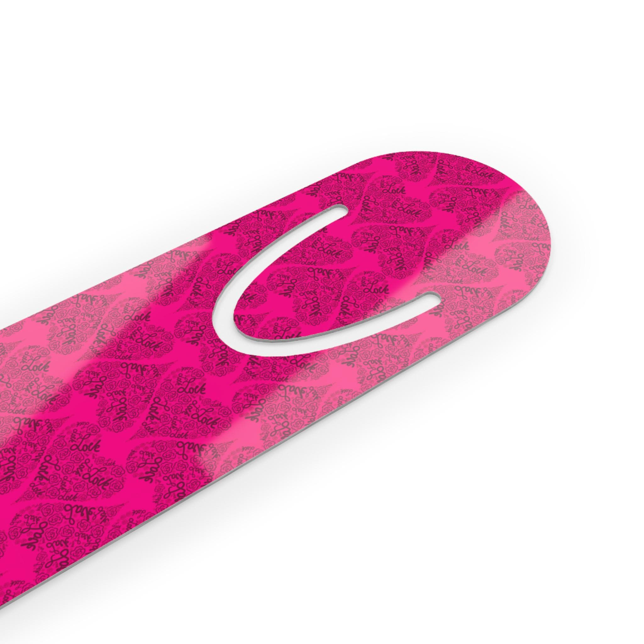 Bring charm to your reading nook with this bookmark featuring a sweet pattern of hearts made of the word LOVE and roses on a dark pink background. Each of our bookmark designs captures a different style or design or pattern on a rectangular 1.25 inch by 5 inch bookmark.