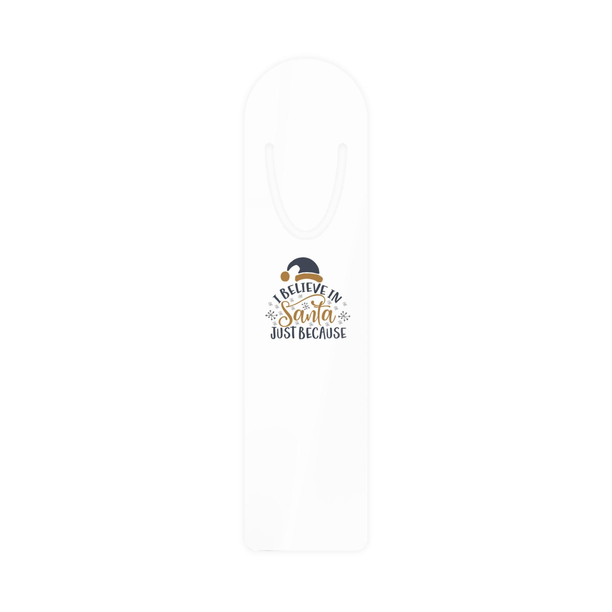 Bring charm to your reading nook with this bookmark featuring the phrase I Believe In Santa Just Because in black and gold. Each of our bookmark designs captures a different style or design or pattern on a rectangular 1.25 inch by 5 inch bookmark.
